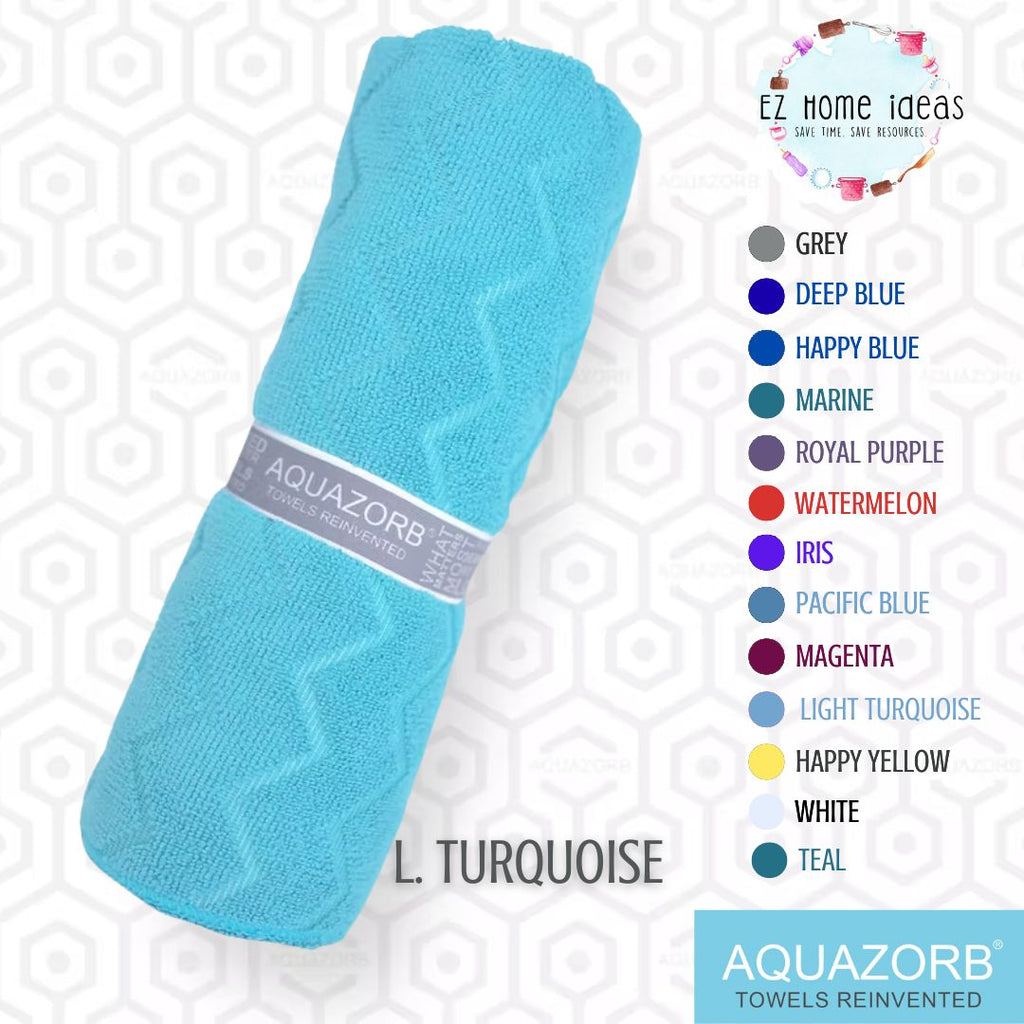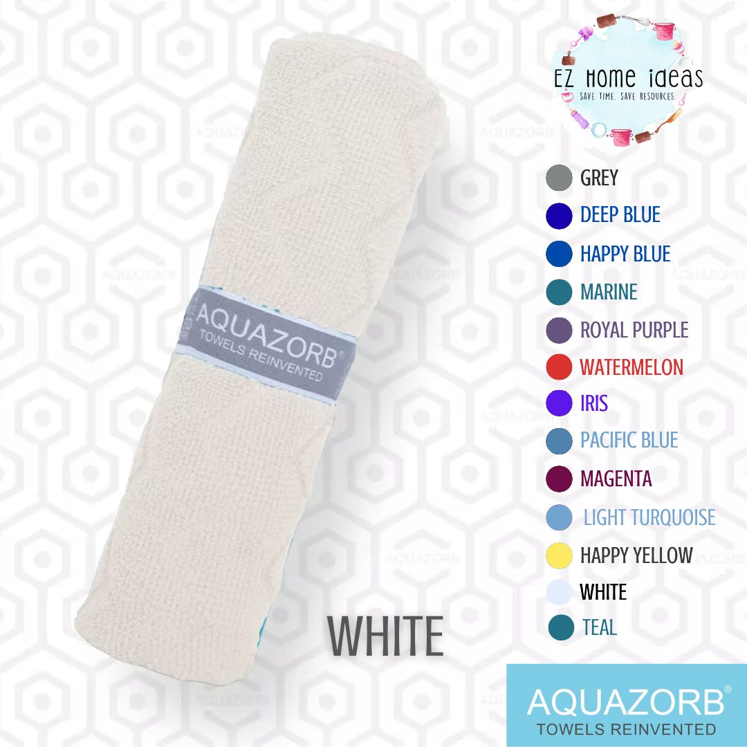 Compact, super-absorbent, and durable, the AQUAZORB Towel is everything you need and more in a towel. It has a great capacity for absorbing moisture instantly from your skin and removing pore-clogging oils, sweat and dirt. AQUAZORB also innovated a built-in elastic loop that secures the towel in a roll, making it very compact and handy. It can also function as a hook to dry towels in between uses.
