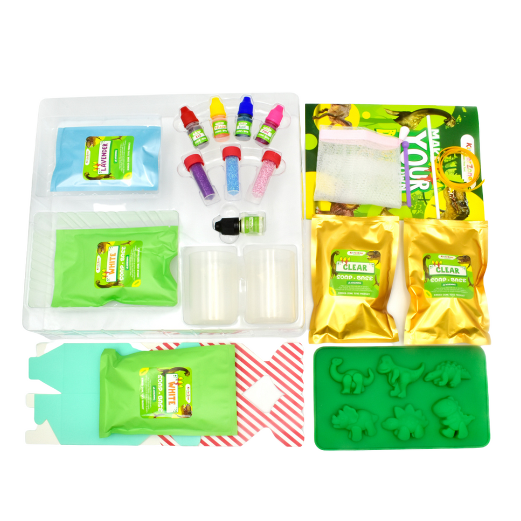 12 soap - 6 Dinosaur Models - 4 Colors - 3 Glitters - 2 Gift Boxes